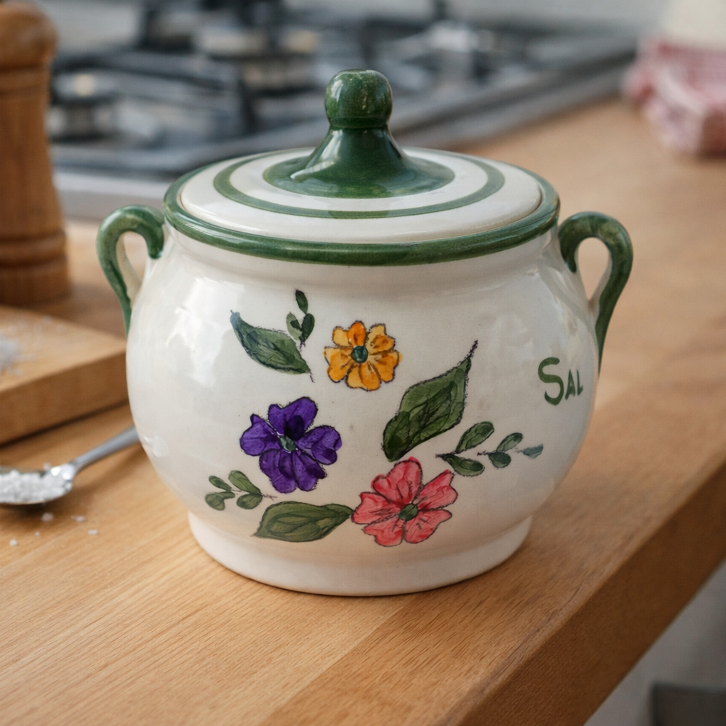Este producto artesano dispone de una tapadera de cerámica (incluida), ayuda a conservar perfectamente la sal. Además está fabricado con doble cocción y un vidriado especial que permite su limpieza en lavavajillas. Gracias a su decoración, queda perfecto en cocinas tradicionales o del estilo “ikea”.